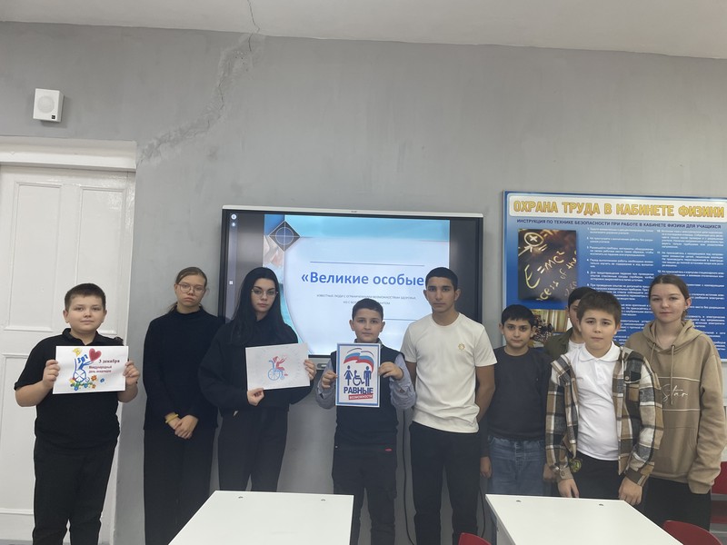 В рамках декады инвалидов для учащихся 7 и 9 классов была проведена беседы «Люди так не делятся», посвященная Международному дню инвалидов. Для учащихся была поведена беседа, на которой дети узнали о параолимпийцах, выдающихся личностях, которые являются людьми с ограниченными возможностями.