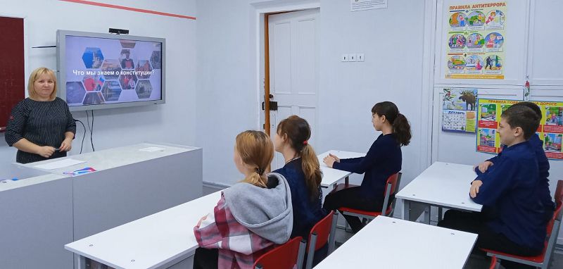 Сегодня, в День Конституции Российской Федерации, советником директора по воспитанию и взаимодействию с детскими общественными объединениями с учащимися 7-8 класса проведена интеллектуальная игра «Что мы знаем о конституции?». Ребята с азартом выбирали категории и почти всегда правильно отвечали на вопросы викторины.
