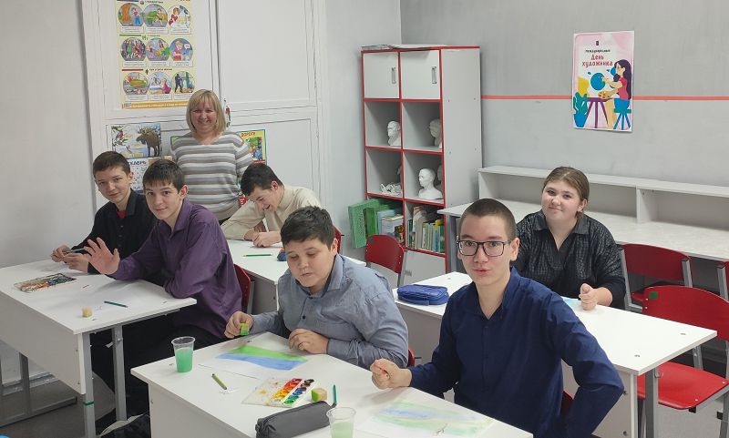 Учащиеся вместе с советником по воспитательной работе нарисовали рисунки с помощью губки и ватных палочек. В своих работах ребята отразили природные достопримечательности своего Донского края.