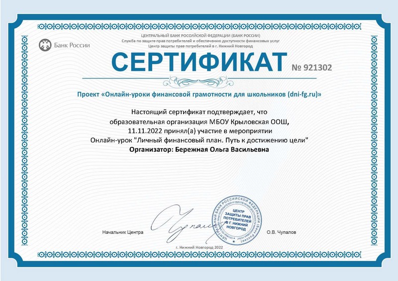 Ученики 8-9 классов приняли участие в онлайн-уроке финансовой грамотности "Личный финансовый план. Путь к достижению цели".