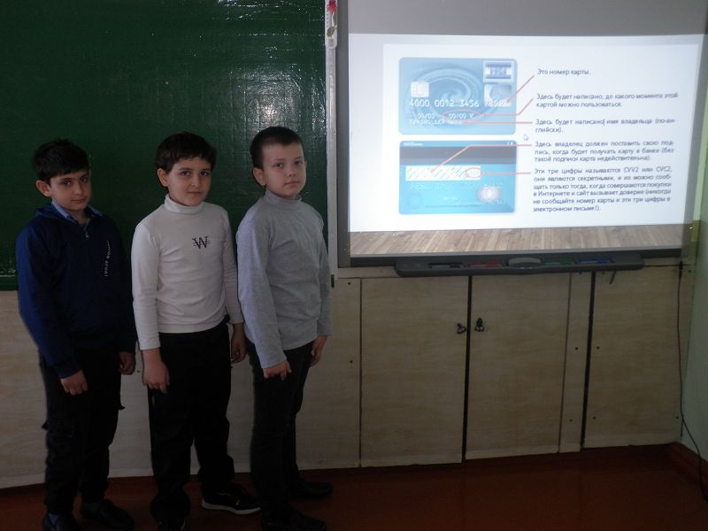 В рамках недели финансовой грамотности 10 ноября в 3,4 классах прошел урок на тему: «Дебетовая и кредитная карта».В ходе занятия дети познакомились с видами банковских карт, выяснили отличие дебетовой карты от кредитной. Узнали значение новых понятий: кредитный лимит, льготный период, штрафные санкции, кредитная история.