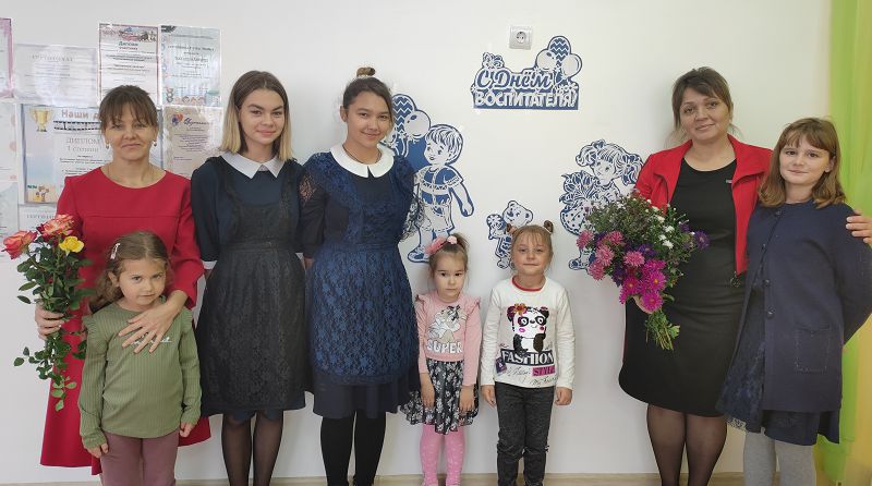 27 сентября в России отмечается общенациональный праздник — «День воспитателя и всех дошкольных работников». В этот день ребята подарили работникам дошкольной группы «Ромашка» поздравительные стихи, пожелания успехов, здоровья, терпения и послушных воспитанников. А накануне праздника учащиеся украсили комнату вытынанками, вырезанными с любовью и теплом.