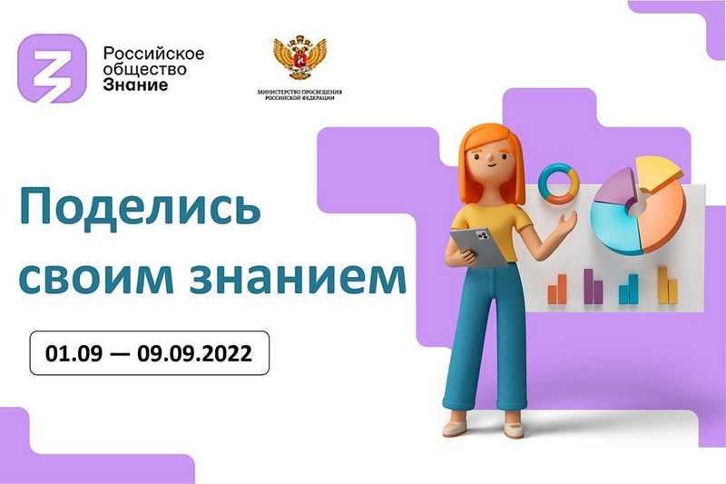 С 1 по 9 сентября проходит одна из крупнейших просветительских акций для молодежи в России «Поделись своим Знанием», организованная Российским обществом «Знание» при поддержке Министерства просвещения РФ и Министерства науки и высшего образования РФ.