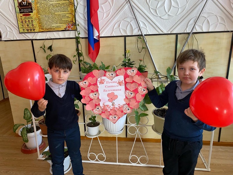 14 февраля в нашей школе работала «Почта Святого Валентина». Ребята и учителя отправляли по почте друг другу открытки - валентинки. Старшеклассники поздравили учителей и малышей дошкольной группы, подарив им шарики в виде сердечек.