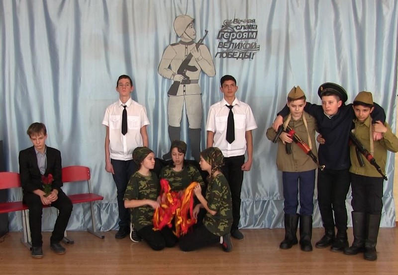 Ребята из 5-8 классов приняли участие в районном конкурсе инсценированной военной и патриотической песни «Песня солдатская моя», представив песню «Ты же выжил, солдат»