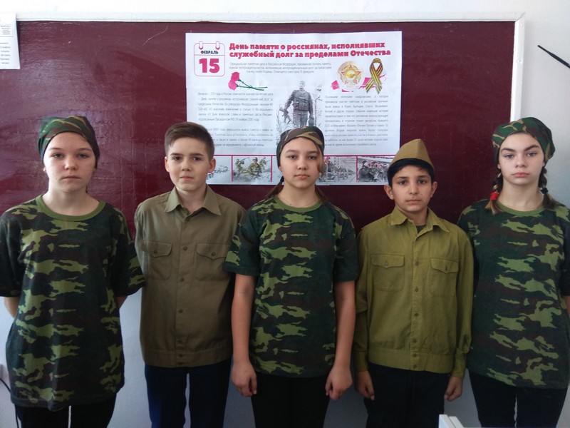 В 6 классе прошел урок мужества, посвященный дню памяти о россиянах, исполнявших служебный долг за пределами Отечества, с целью сохранения исторической памяти о подвиге солдат и офицеров, воспитания молодого поколения в духе патриотизма и любви к Родине.