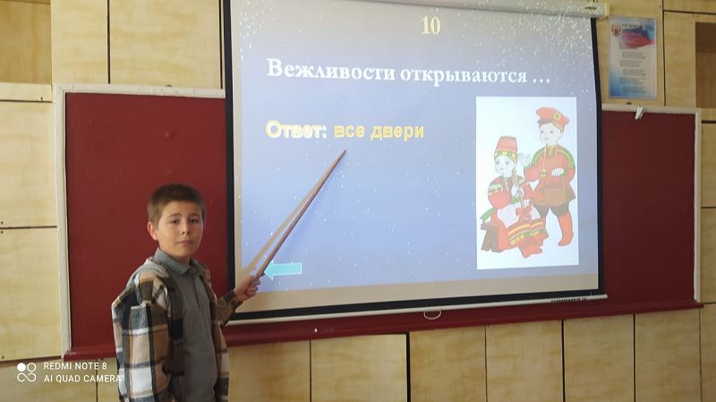 Учащиеся узнали, что значит «Вежа» и приняли участие в игре: «Мы- вежливые люди».В ходе игры побывали на станциях: «Культура общения», «Культура поведения», «Культура речи», «Культура гостя», «Пословицы и поговорки о вежливости».Итогом классного часа стали слова: «Будем всегда вежливыми!».