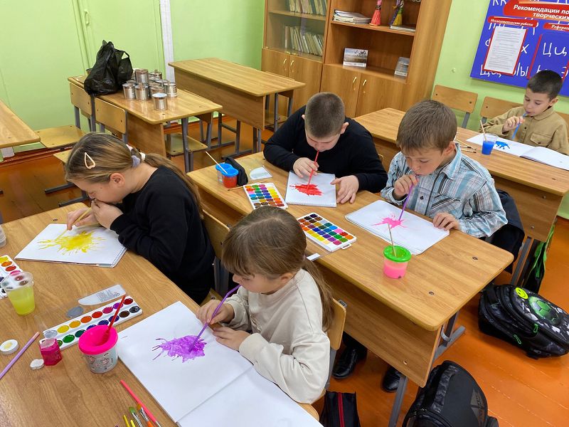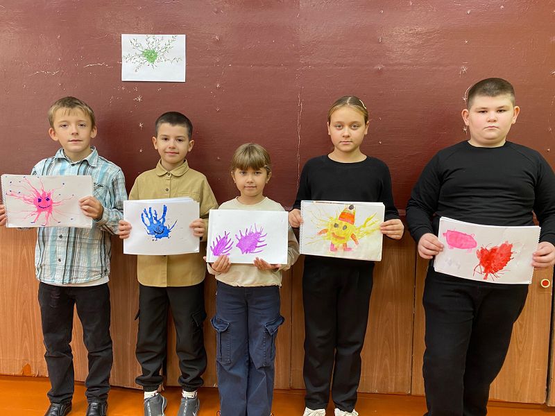 Для 2 и 4 класса был проведен мастеркласс по рисованию. Ребята изобразили кляксы с помощью красок и соломинок для напитков. Данная техника помогает развивать фантазию детей. Каждый изобразил свою кляксу так, как увидел ее, также дали им имена.