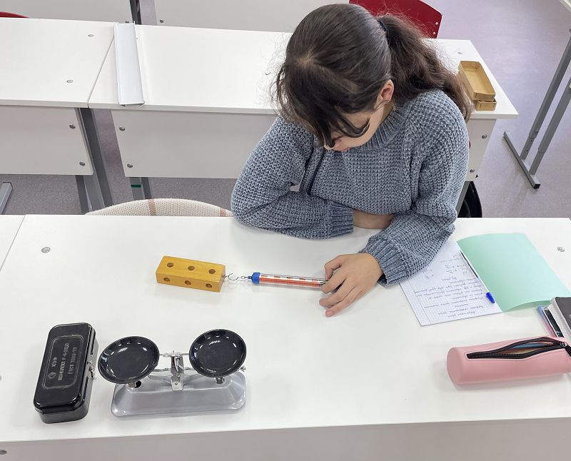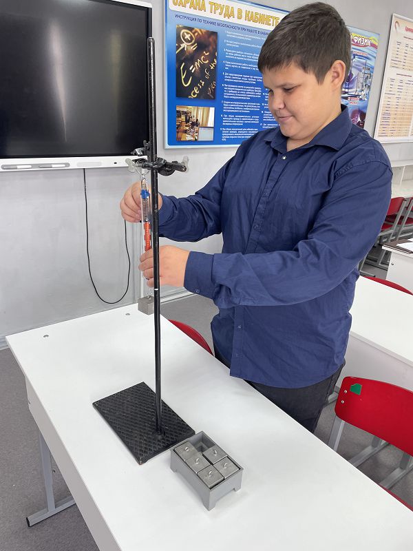 На базе образовательного центра «Точка Роста» для учащихся 9 класса прошла лабораторная работа «Определение жесткости пружины».